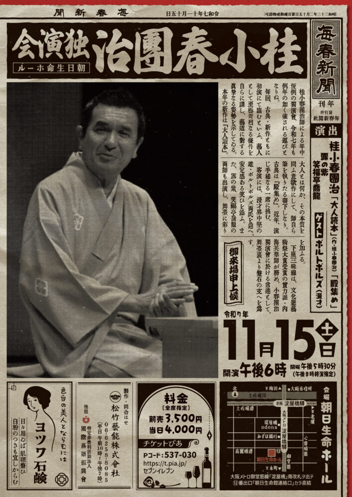 ◆出演◆ 桂小春團治「大人読本」(作:桂小春團治)「殿集め」、露の紫、笑福亭喬龍
